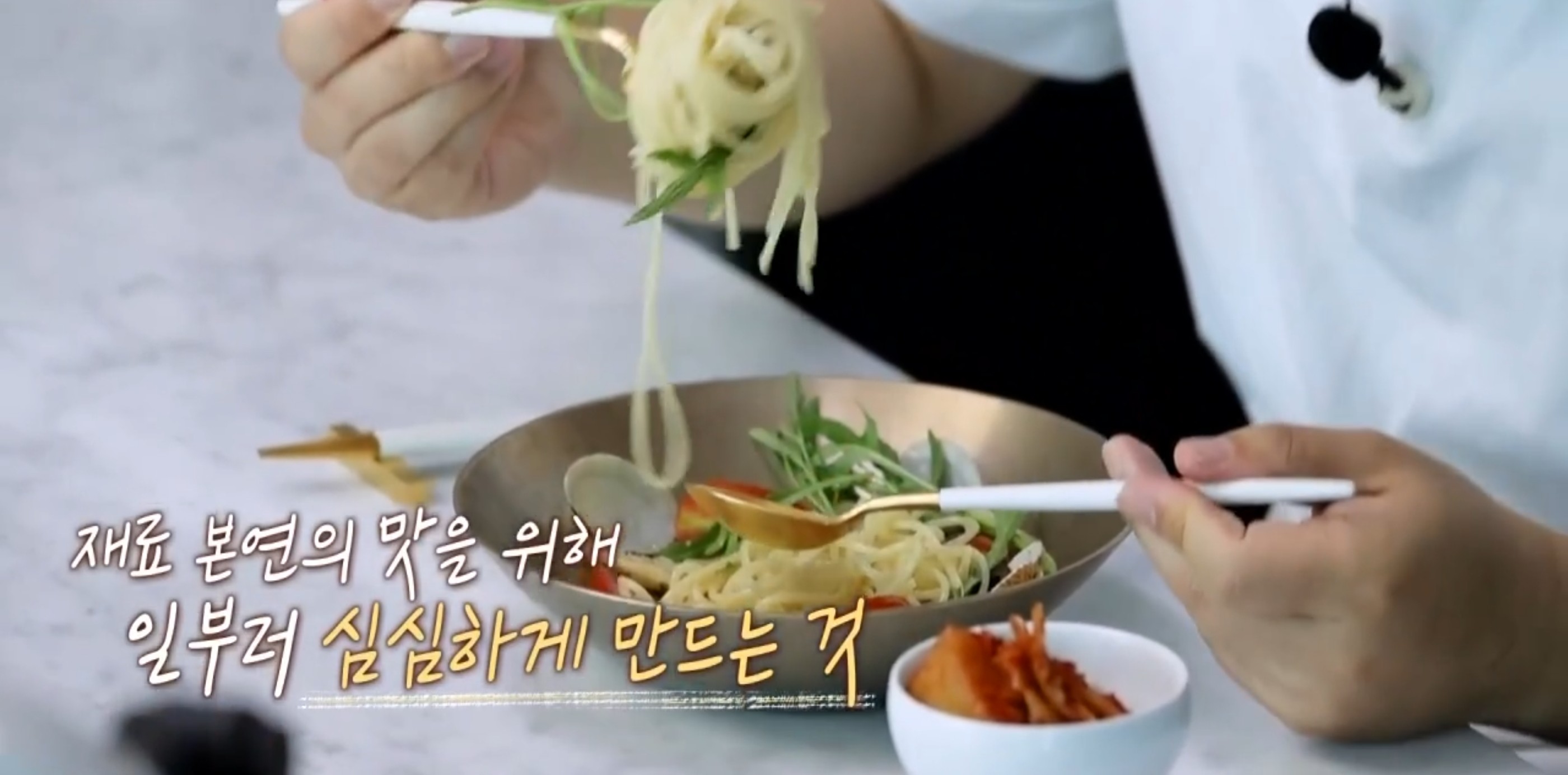 남상일 씨의 팁처럼 간을 심심하게 맞추고 김치를 곁들이면 더욱 한국적인 봉골레 파스타가 완성됩니다.